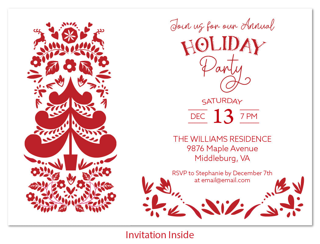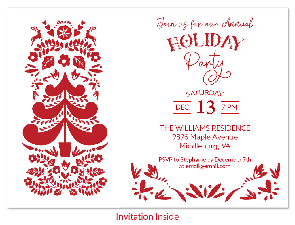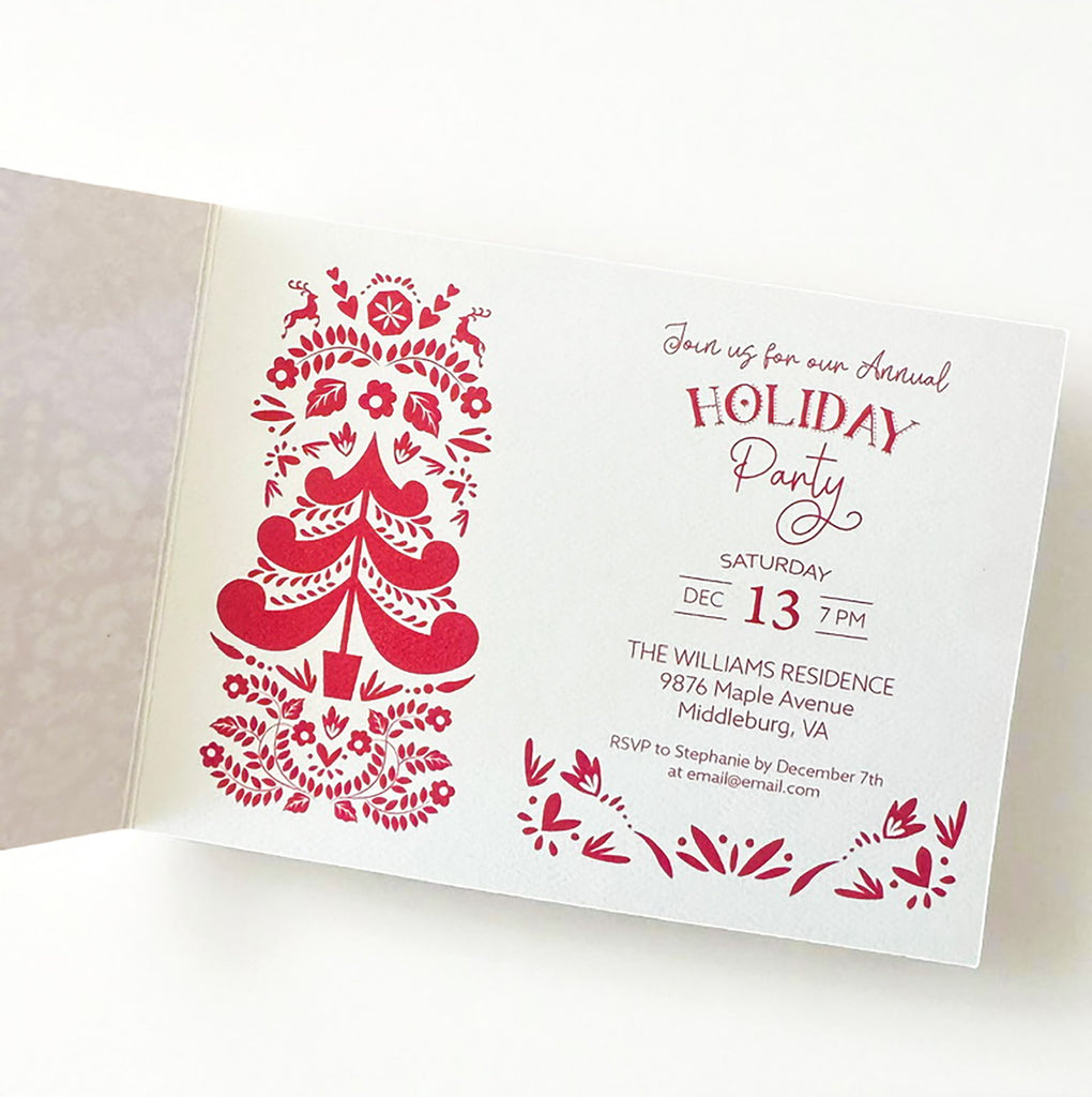 Introduce your holiday celebration with the 2025 Die Cut Nordic Holiday Invitation, featuring a refined design inspired by Scandinavian motifs. This intricately die-cut invitation brings understated elegance and festive warmth to your event announcements. Ideal for seasonal gatherings, it blends modern simplicity with traditional charm to create a memorable first impression.