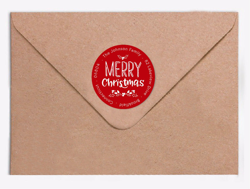 The stickers are 1.75" round and printed on matte or glossy sticker paper, and work well on most standard-sized envelopes.
