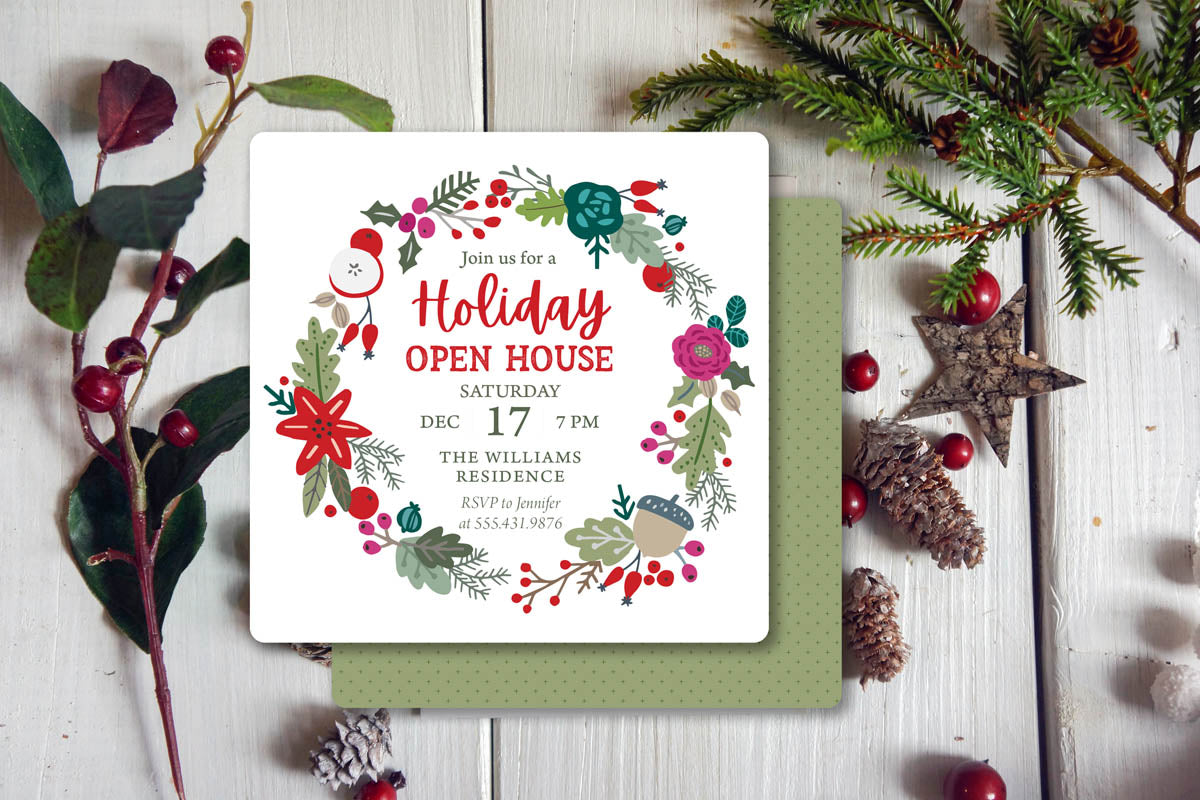 Greet your guests with timeless beauty using our Die Cut Christmas Flower Wreath Invitations. Precision-cut into an elegant floral wreath silhouette, printed on premium card stock with fully customizable text — a graceful and festive choice for any holiday celebration.