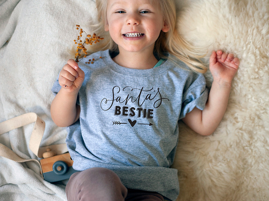 Let your little one proudly claim their place as Santa's number one bestie in our Santa's Bestie Christmas T-Shirt. Personalized with your child's name and available in multiple sizes from toddler to youth, this fun and festive tee is printed and shipped directly to your door — a playful and adorable gift for Christmas morning, holiday family photos, or any merry seasonal celebration.