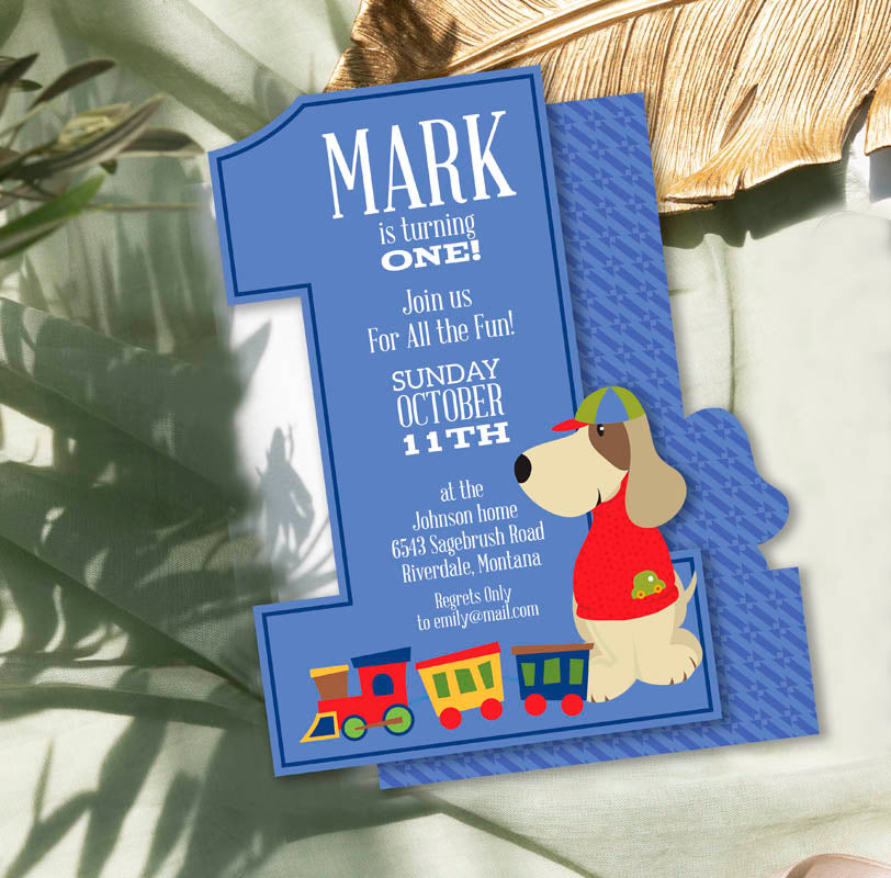 1st Birthday Die Cut Invitation for a Boy | Custom First Birthday Party Invite