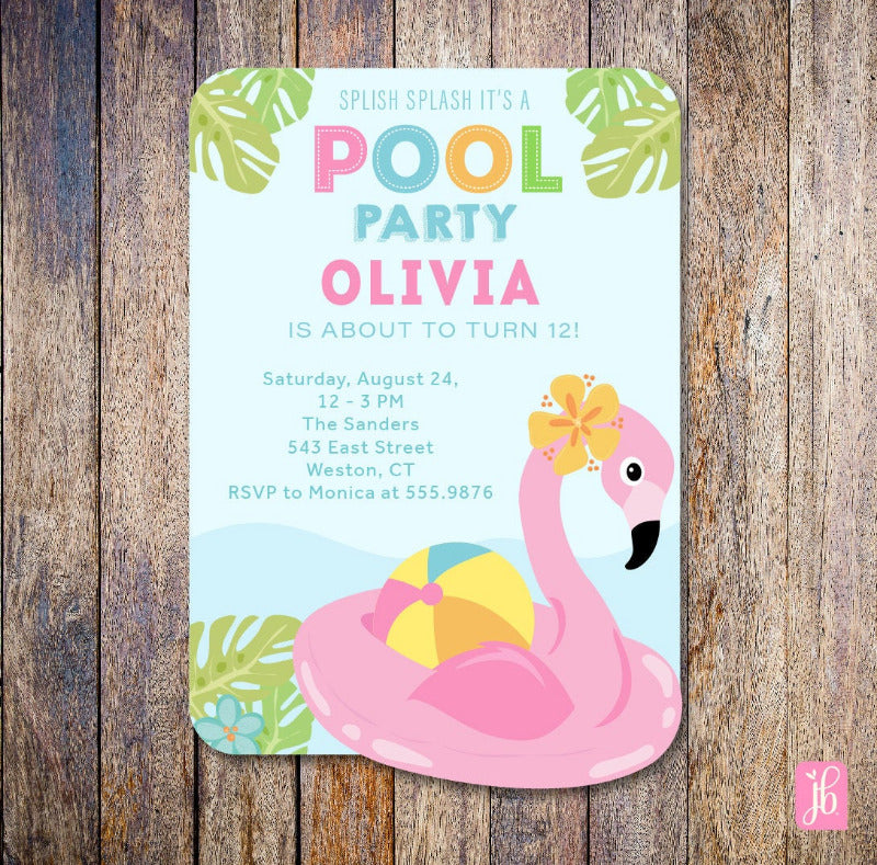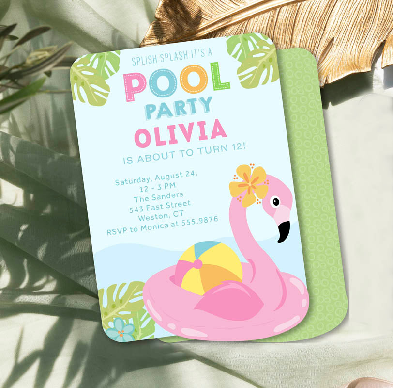 Printed on premium quality cardstock and fully customized with all your party details, this invite is as fabulous and fun as a flamingo in full stride.