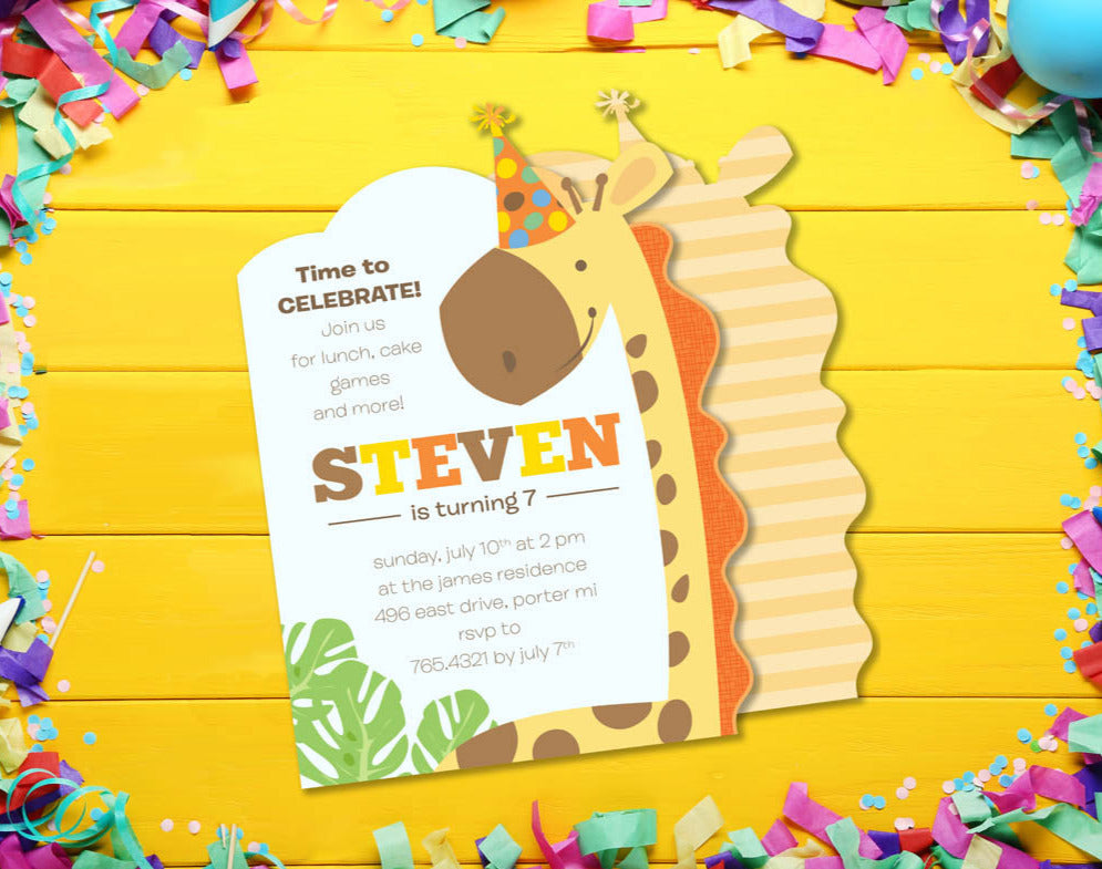 The Giraffe Birthday Die Cut Invitation is an adorably tall order of fun — a bright, playful giraffe design bursting with safari charm, warm golden tones, and all the wild animal personality that has every guest jumping with excitement for the most spot-tacular party of the year.