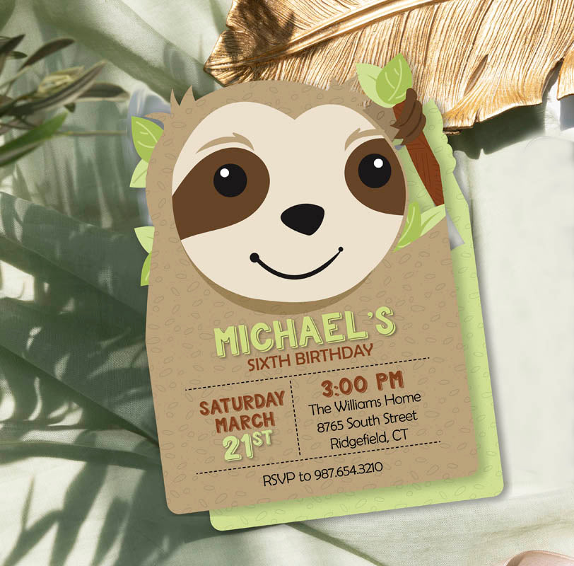 The Sloth Birthday Die Cut Invitation is an adorably laid-back way to invite guests to your little one's birthday bash — a charmingly cute sloth design full of lazy-day personality, warm tropical colors, and the kind of irresistible charm that has every guest hanging with excitement.