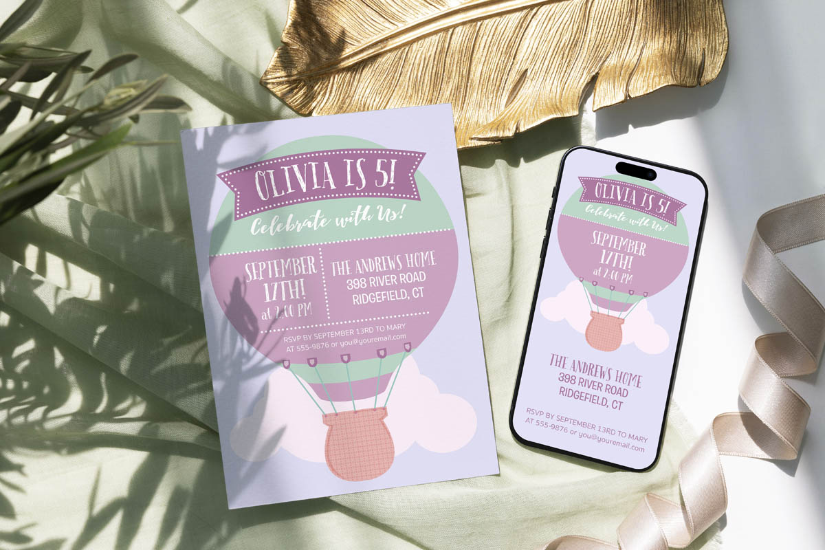 Send your little one's celebration soaring with our Hot Air Balloon Kids Digital Birthday Party Invitation. Professionally personalized with your child's name and event details and delivered as a print-ready digital download with quick turnaround — a whimsical and adventurous choice for hot air balloon themed birthday parties, adventure celebrations, or any up and away gathering for your little explorer.