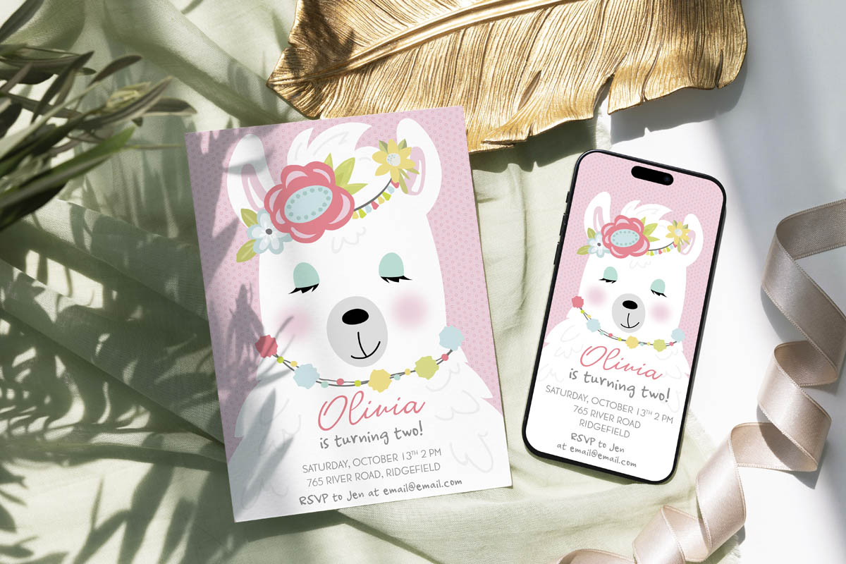Llama Birthday Digital Invite