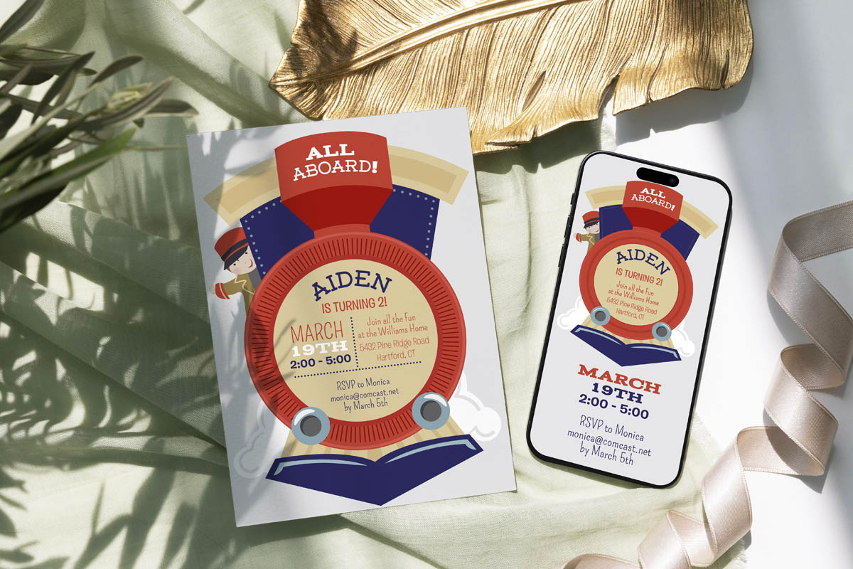 All aboard the birthday express with our Train Kids Digital Party Invitation. Professionally personalized with your child's name and event details and delivered as a print-ready digital download with quick turnaround — a fun and adventurous choice for train themed birthday parties, transportation celebrations, or any exciting gathering for your little conductor.