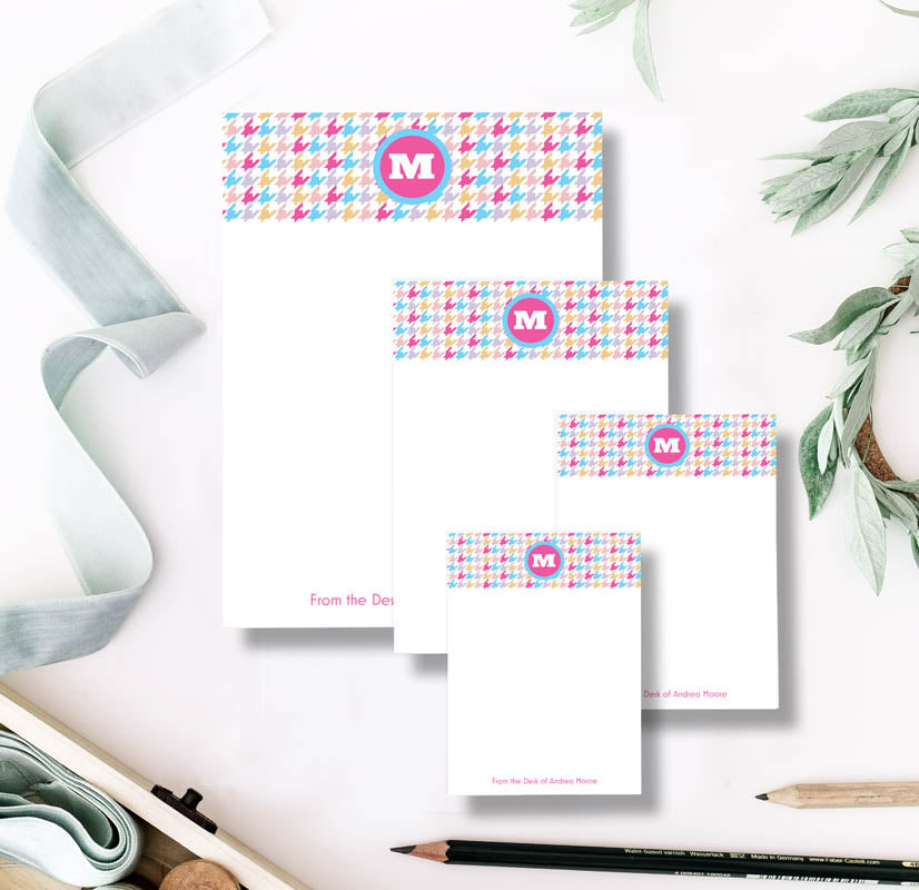 One 50 sheet note pad one each of 3.5" x 5", 4" x 6", 5" x 7", 8.5" x 11"