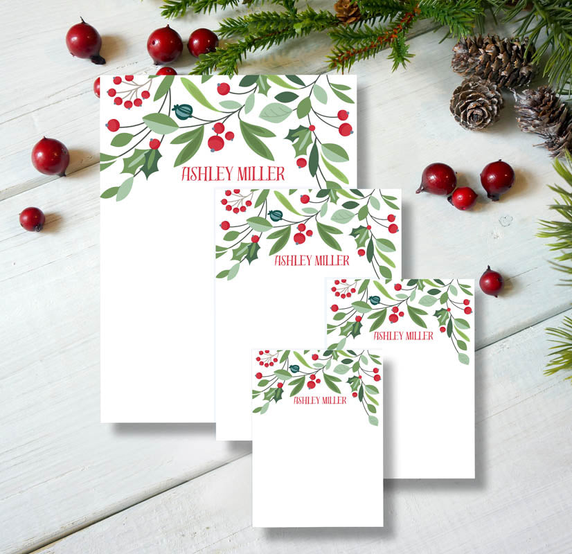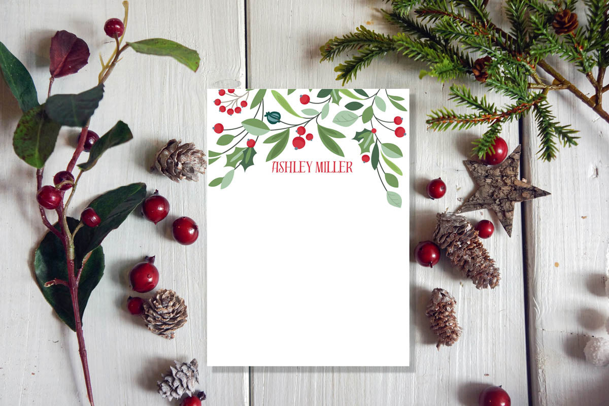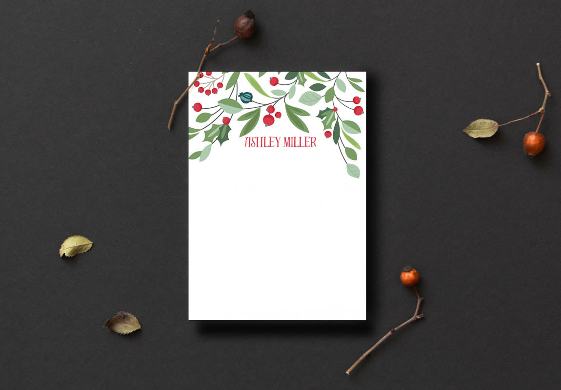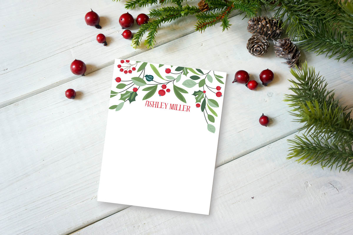 Christmas Berries and Leaves Notepad
