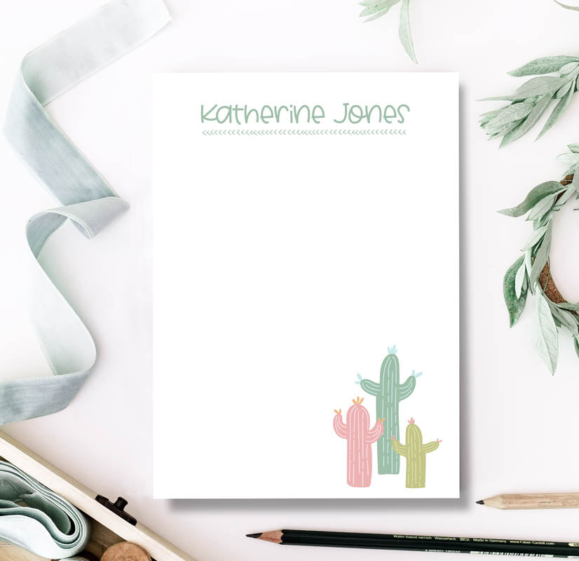 The Desert Cactus Personalized Notepad is the perfect gift idea for any stationery enthusiast! With its unique cactus design, this notepad will bring cheery vibes each time it's used. Get creative, personalize it, and make a thoughtful gift that will be treasured for a long time.
