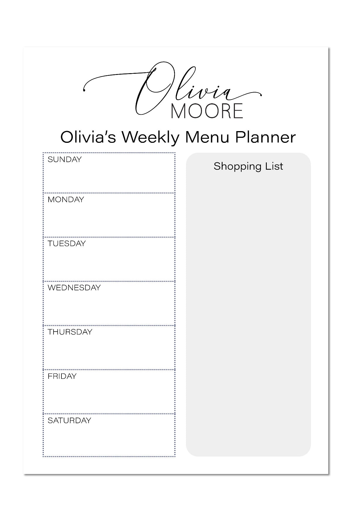 Elegant Script Menu Plan Notepad