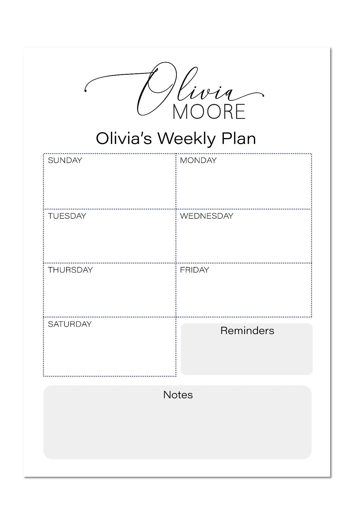 Elegant Script Weekly Plan Notepad