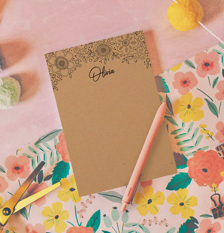 Floral Kraft Brown Custom Notepad - Personalized Rustic Stationery