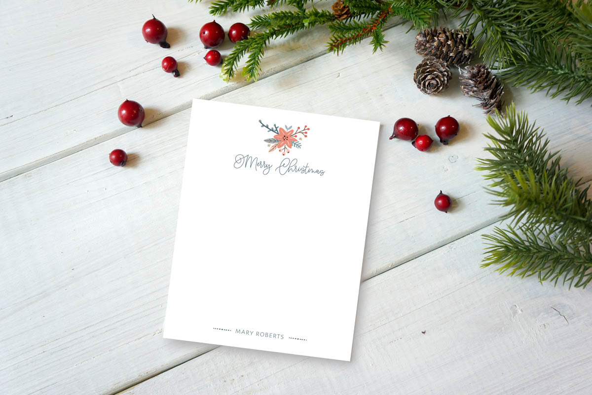 Julie Bluet Poinsettia Bouquet Custom Notepad - Personalized Holiday Floral Stationery