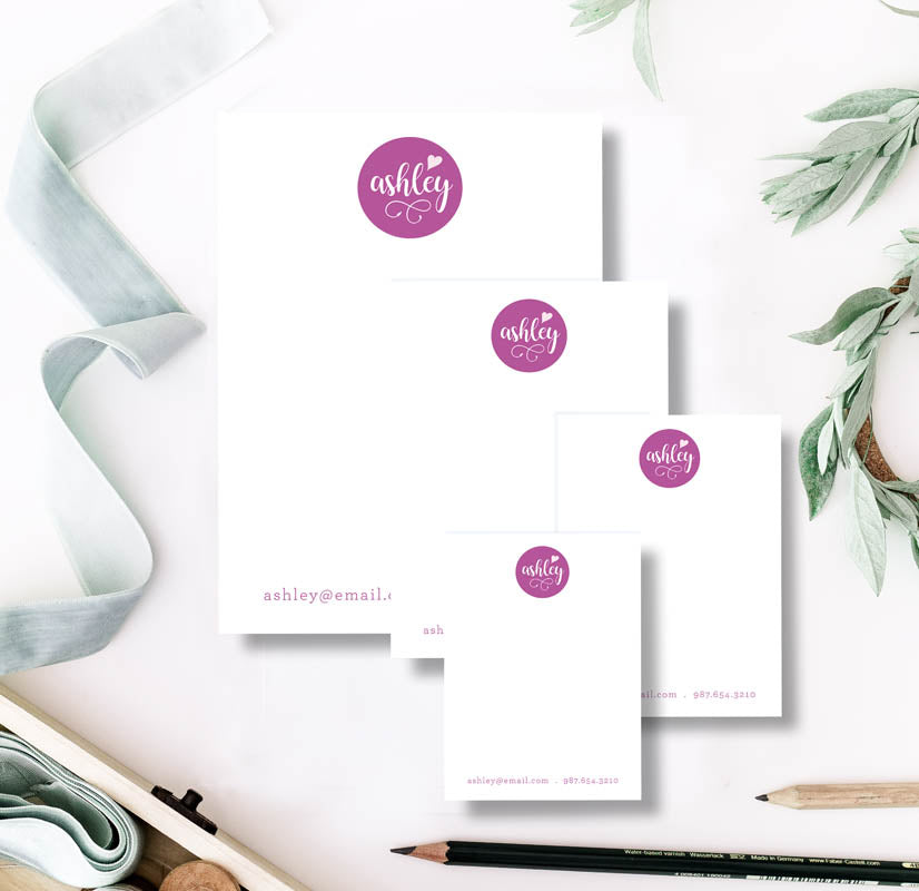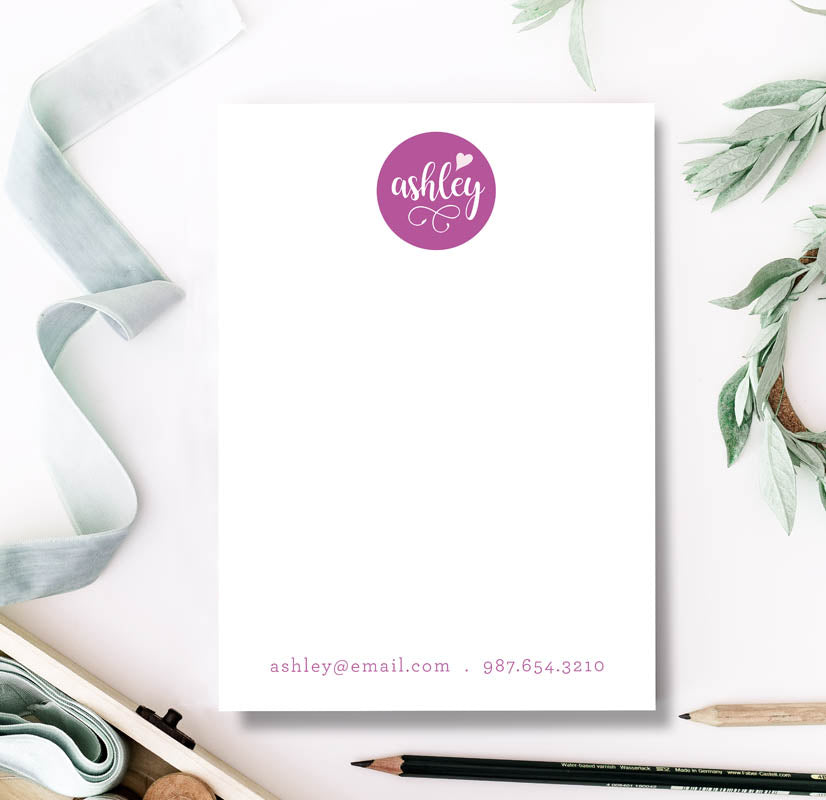 Name and Heart Personalized Notepad - Custom Script Stationery