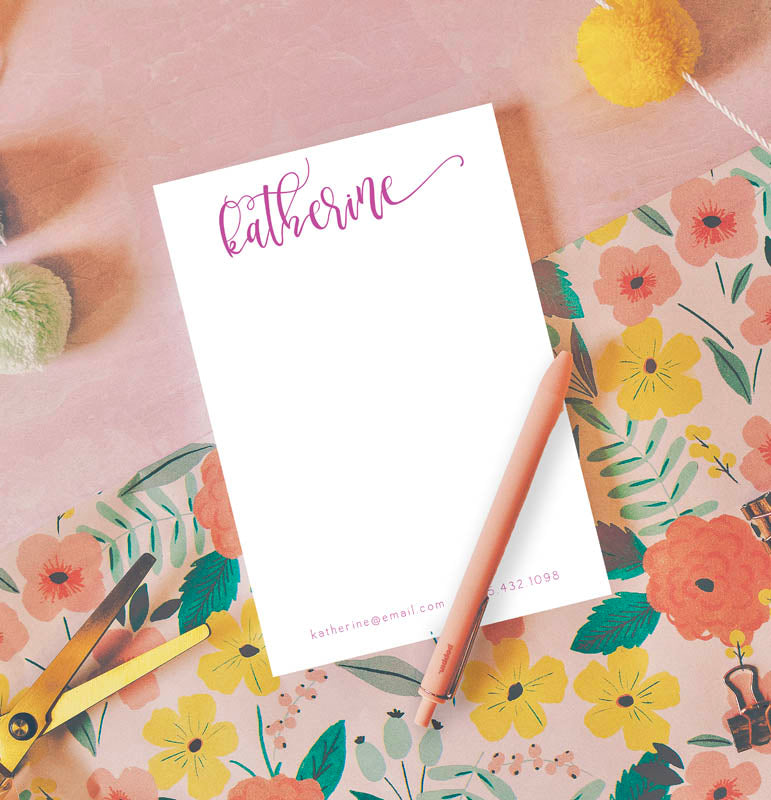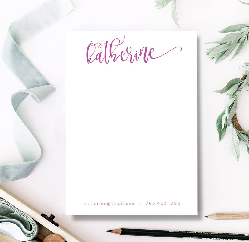 The Script Name Notepad is the perfect stationery choice for special occasions. It is personalized with your name printed in elegant script across the top, making it a unique and stylish addition to your desk or office. Show off your individual sense of style with this sophisticated and unique notepad.