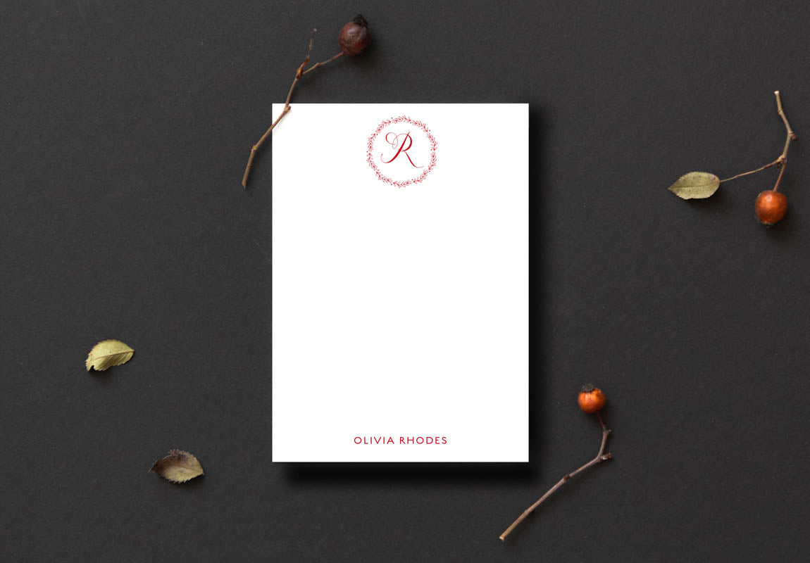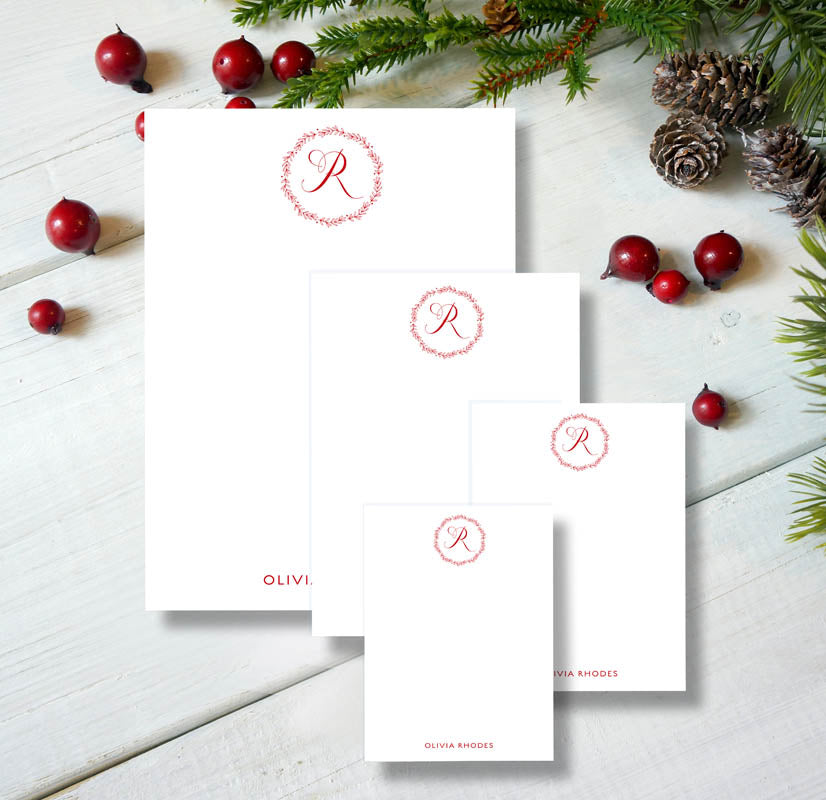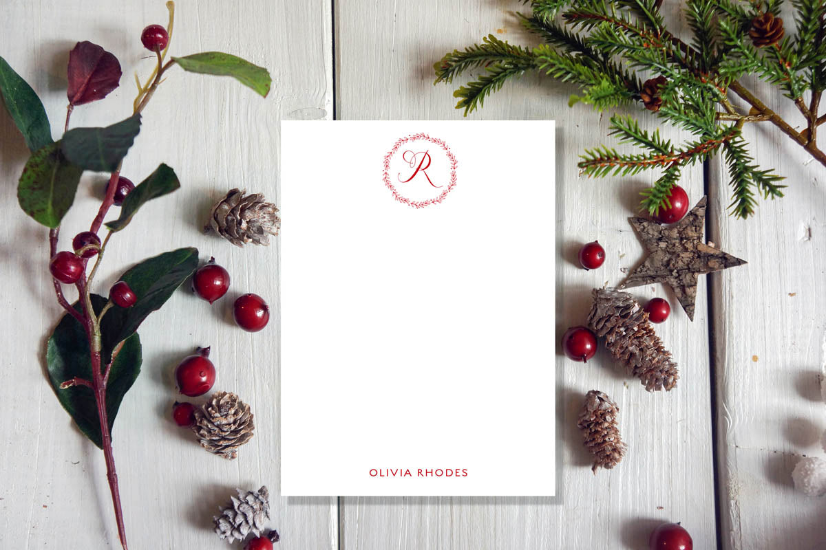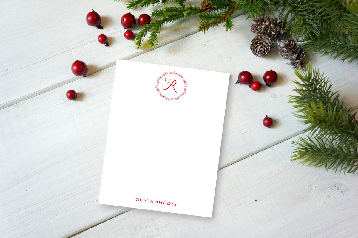 Say Merry Christmas in the most festive way with this stylish Red Ornate Monogrammed Notepad. Perfect for holiday stationery, this pad will make a memorable statement with its luxe design featuring classic holiday colors and a personalized monogram. Enhance your holiday season with this special stationery.