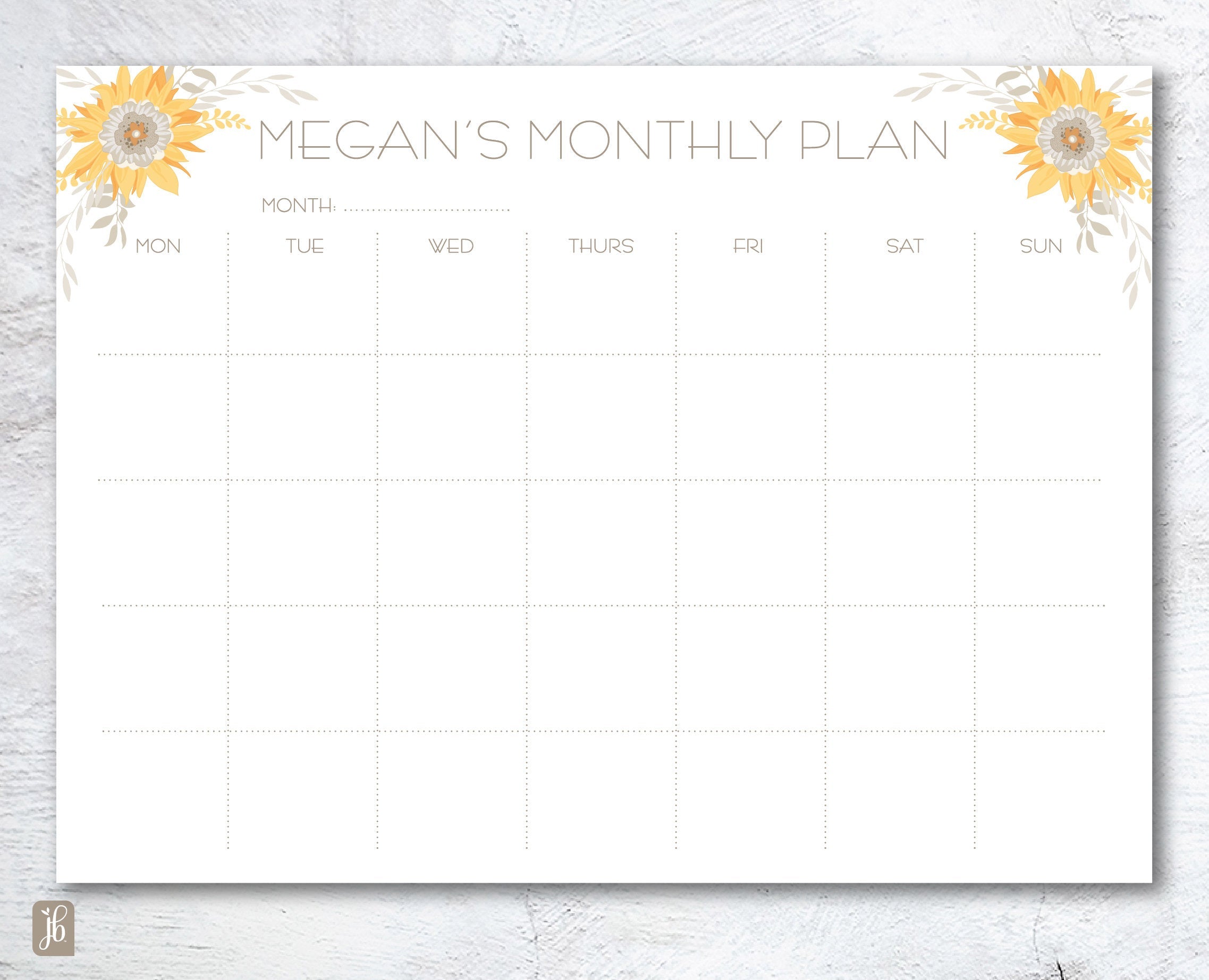 Sunflower Bouquet Monthly Plan Notepad