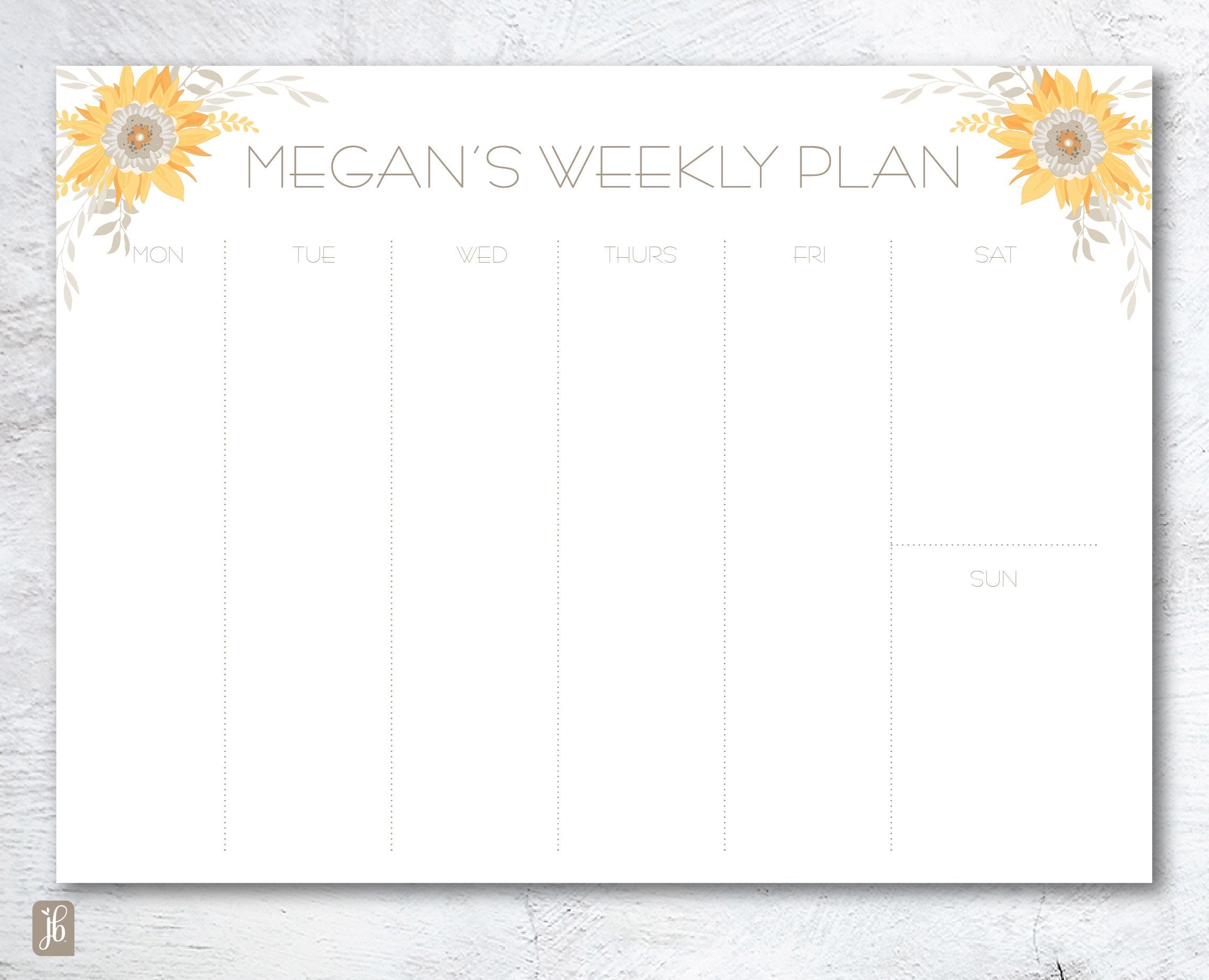 Sunflower Bouquet Weekly Plan Notepad