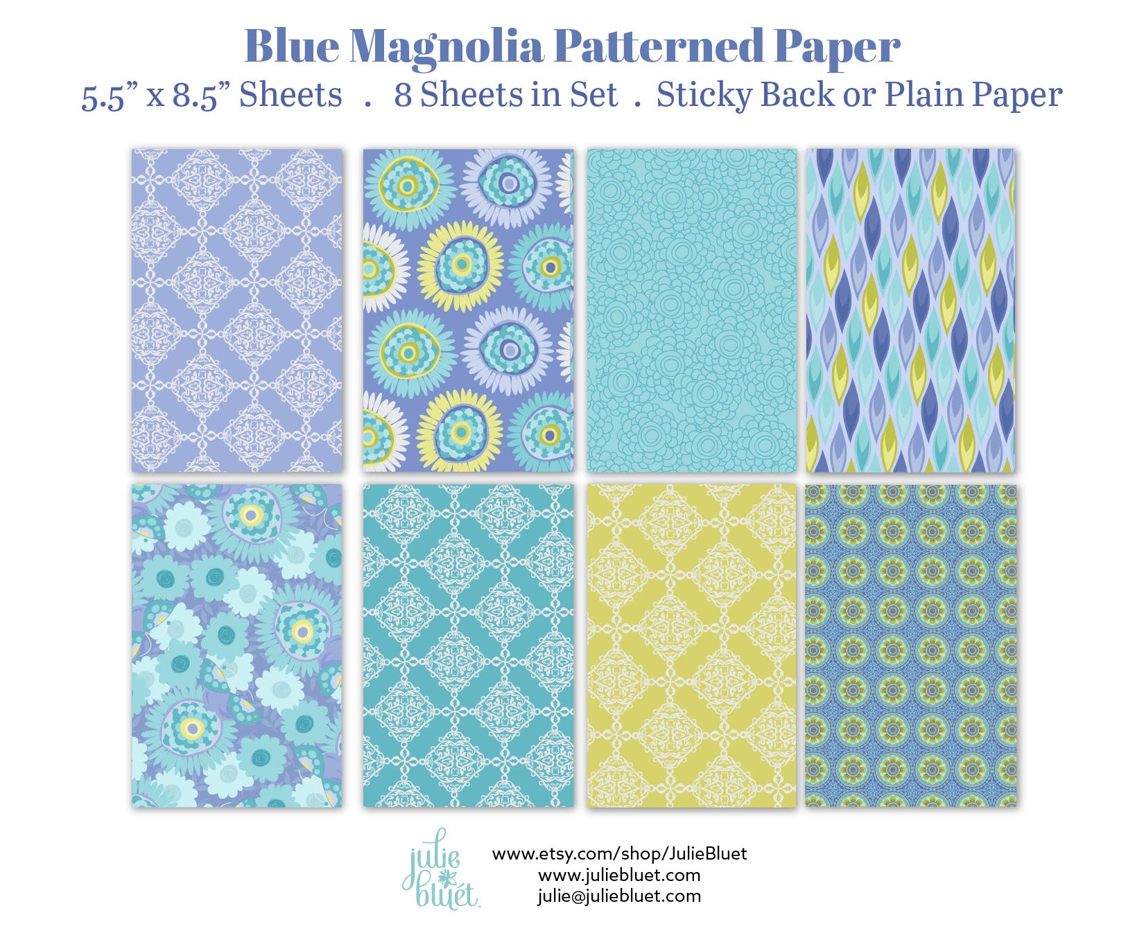 Blue Magnolia Patterned Scrapbook Paper & Coordinating Stickers - 5.5" x 8.5" Sticky Back Paper is backordered and will ship as soon as it is back in stock.
