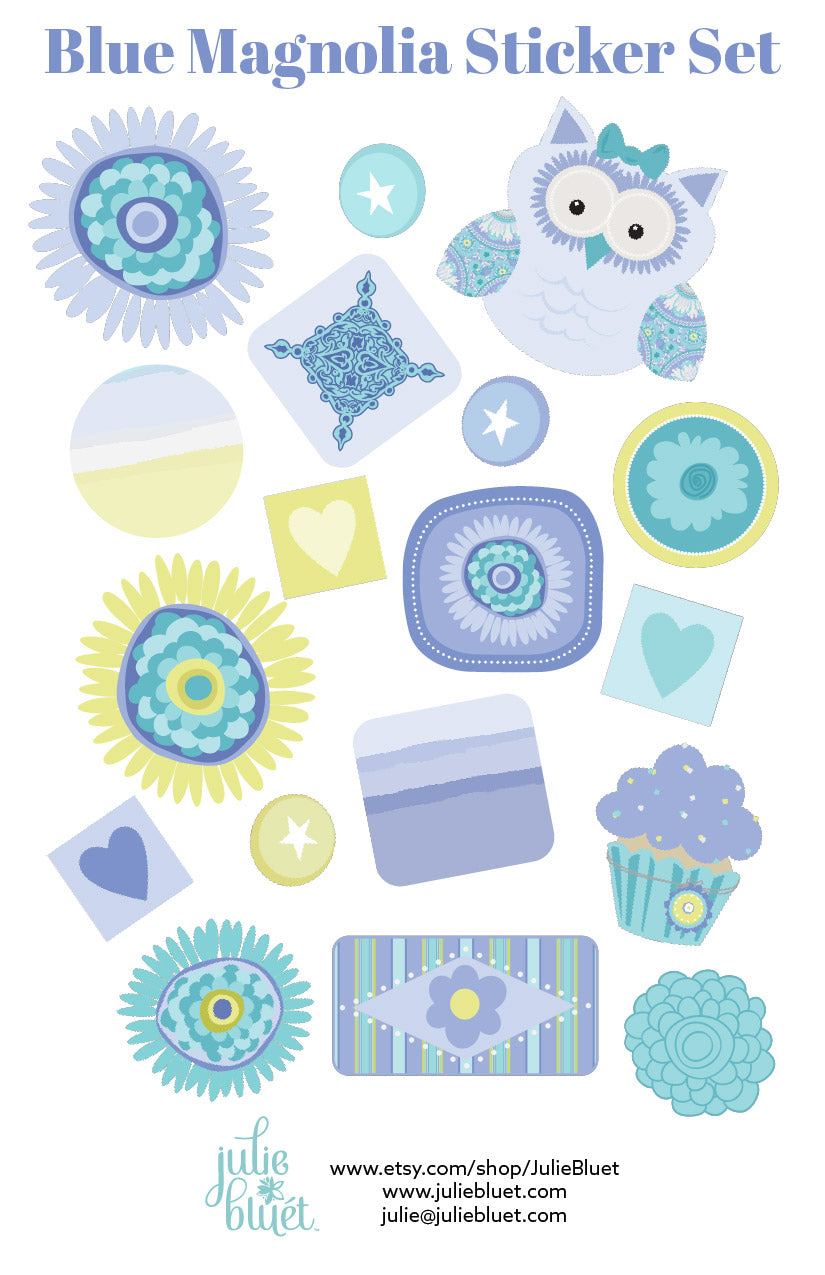 Blue Magnolia Patterned Scrapbook Paper & Coordinating Stickers