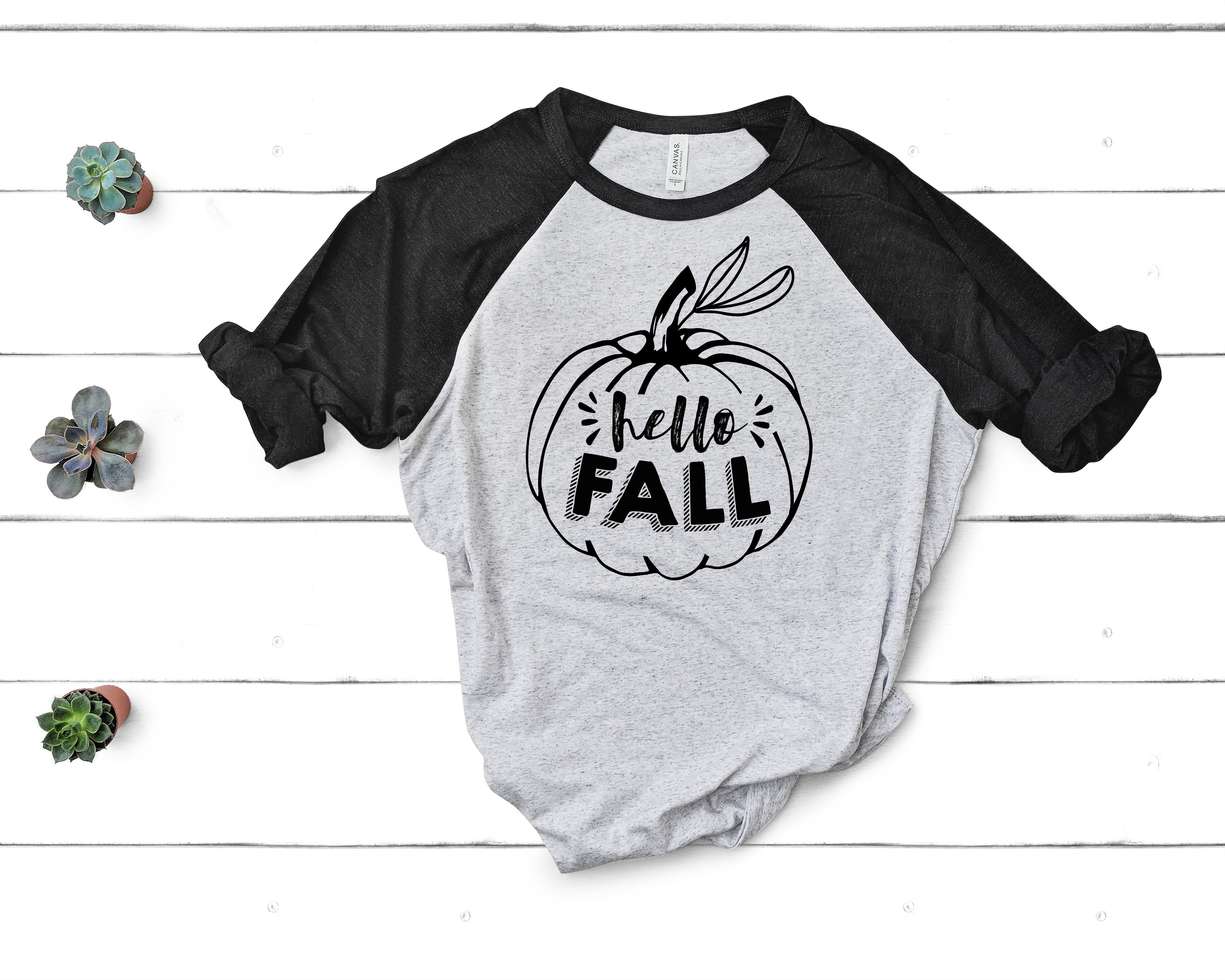 Hello Fall Pumpkin Unisex Raglan Baseball Tee Cozy Autumn Shirt - Small / Black/White is backordered and will ship as soon as it is back in stock.