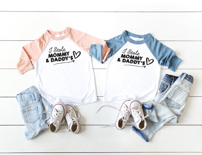 I Stole Mommy or Daddy's Heart Raglan, Cute Kids Raglan Tee