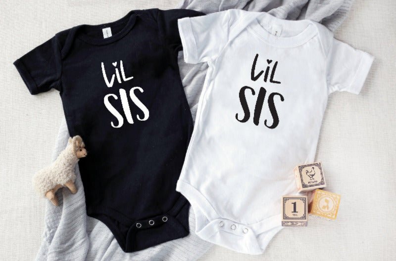 Lil Sis or Lil Bro Baby Bodysuit, Sibling Baby Announcement Suit