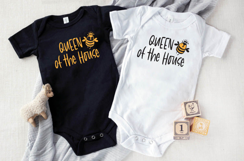 Royally adorable and running the hive! This Queen or King Bee of the House Baby Bodysuit is a fun and playful way to celebrate the little one who rules the roost. Featuring a sweet and cheeky bee design, this soft and comfortable bodysuit is perfect for everyday wear, newborn photos, and letting everyone know exactly who is in charge around here.