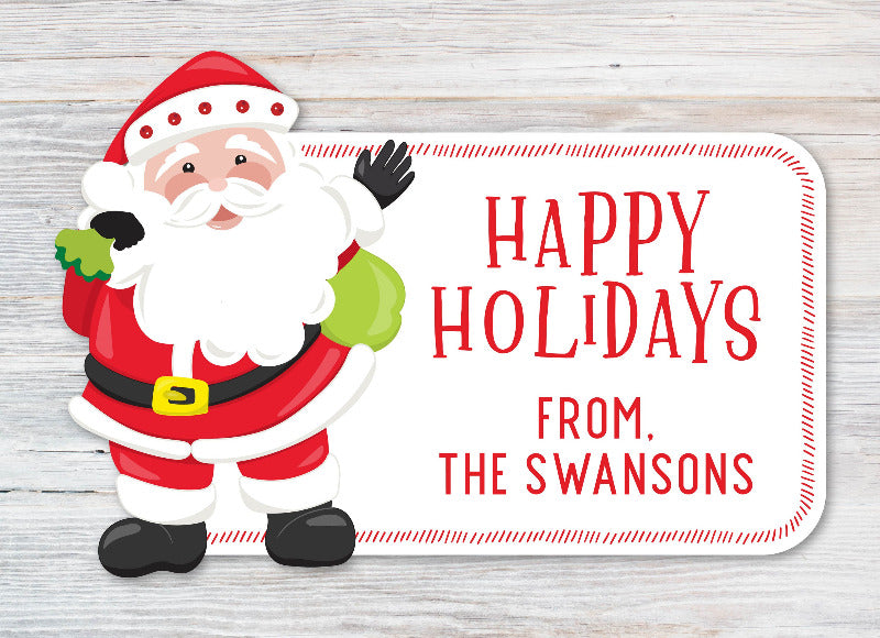 Santa Claus Personalized Christmas Gift Stickers | Holiday Labels - 12 - 2" x 3" Stickers / Happy Holidays is backordered and will ship as soon as it is back in stock.