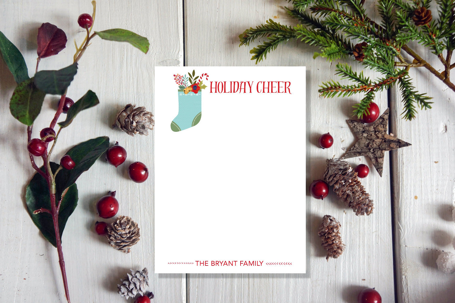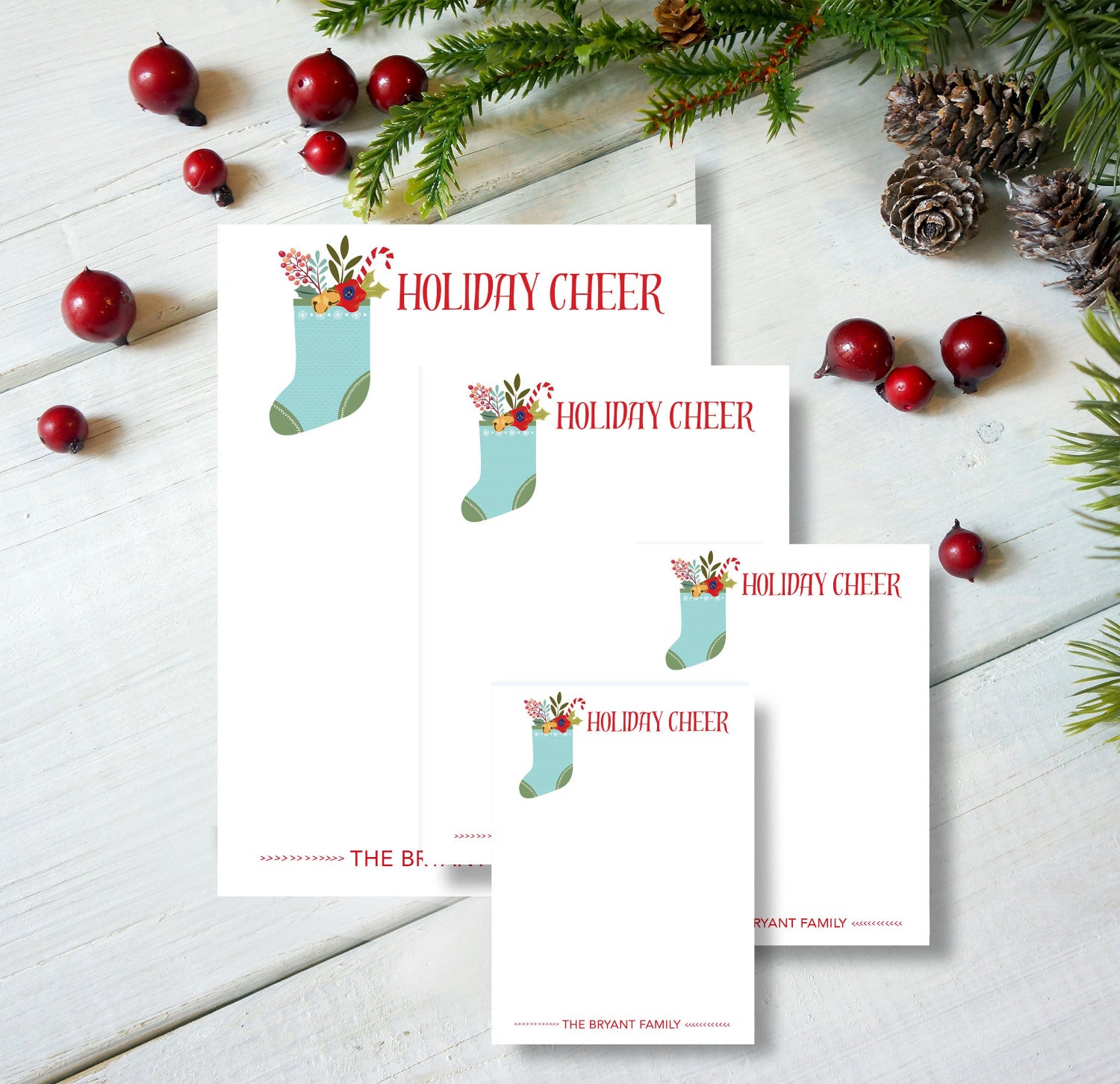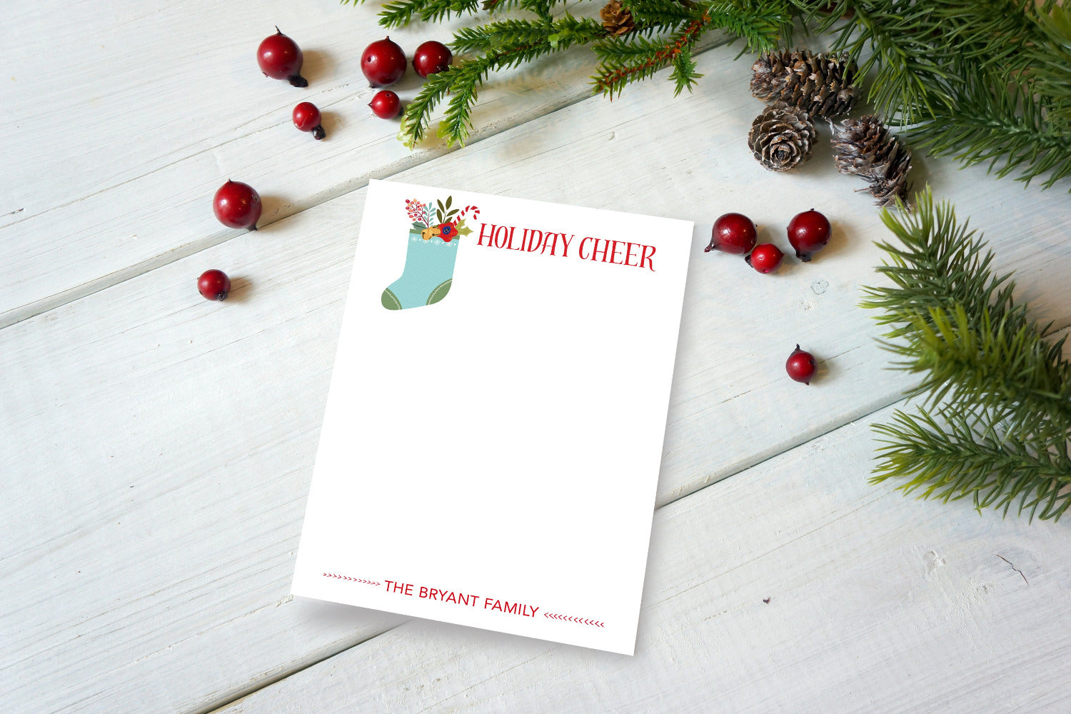 Holiday Stocking Custom Notepad - Personalized Christmas Gift List Stationery