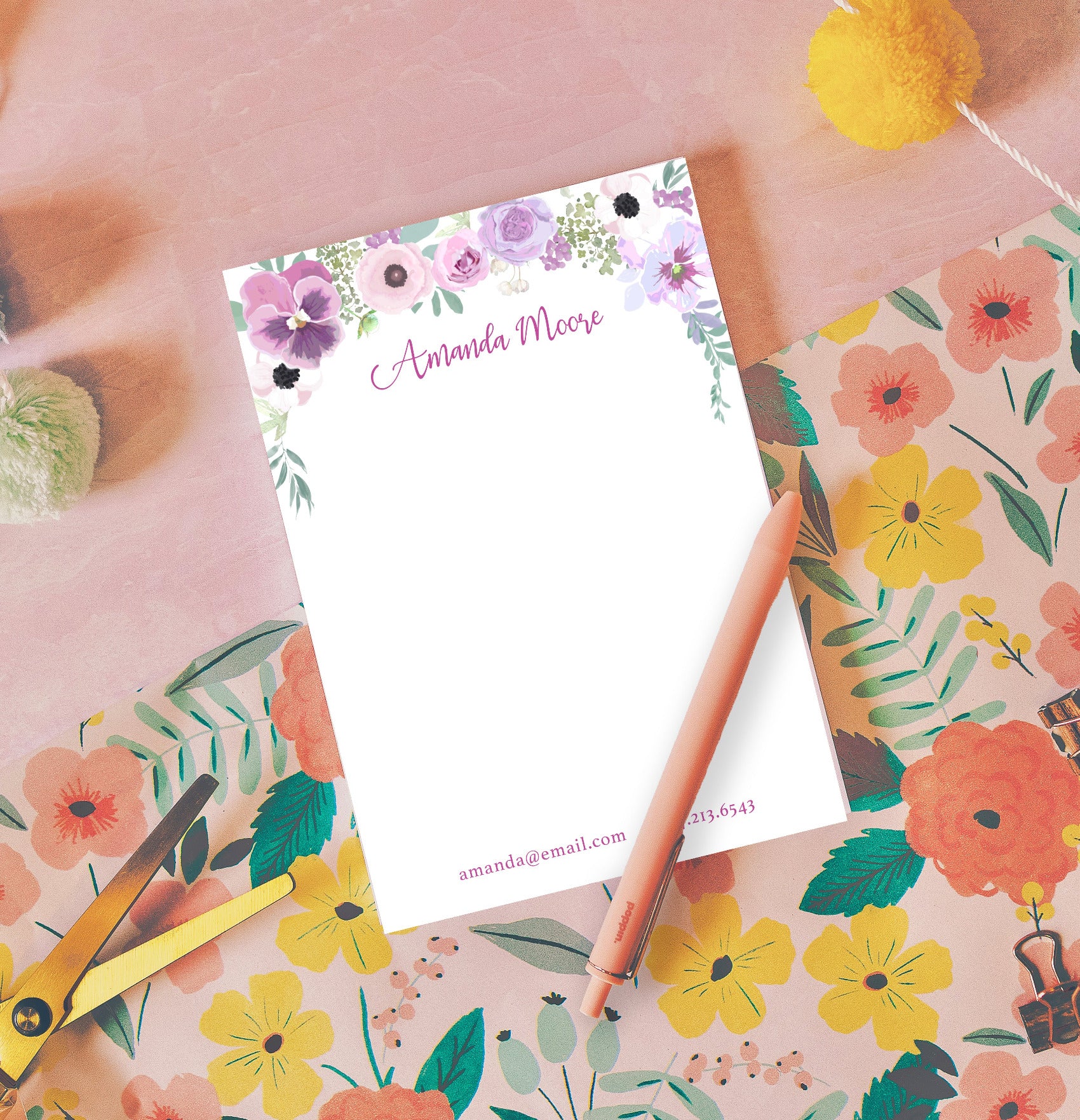 Pansy Garden Notepad | Floral Desk Notepad by Julie Bluet