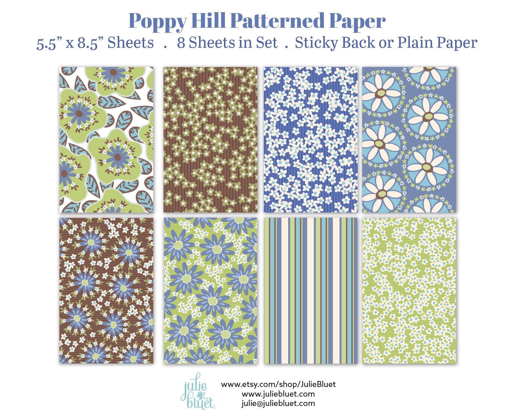 Poppy Hill Scrapbook Paper & Coordinating Stickers - 5.5" x 8.5" Sticky Back Paper is backordered and will ship as soon as it is back in stock.