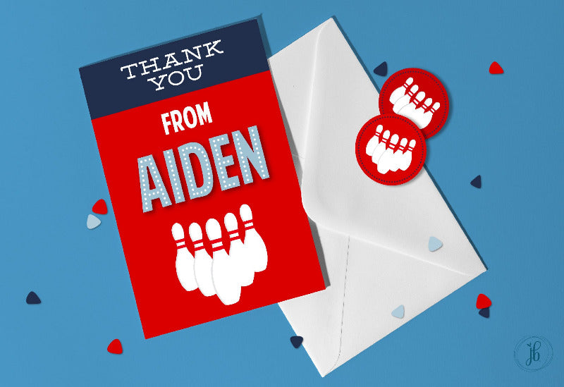 Bowling Party - Personalized Kids Birthday Thank You Card Set