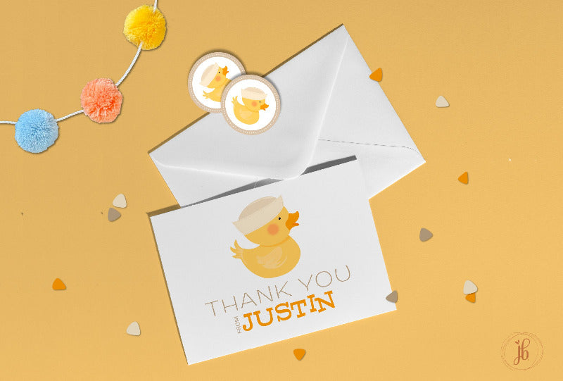These “Boy Ducky” Personalized Thank You Cards will quack up your friends and family! Instantly create a custom set of cards featuring an adorable ducky design; perfect for any special occasion. Show your appreciation with a little bit of flair!
