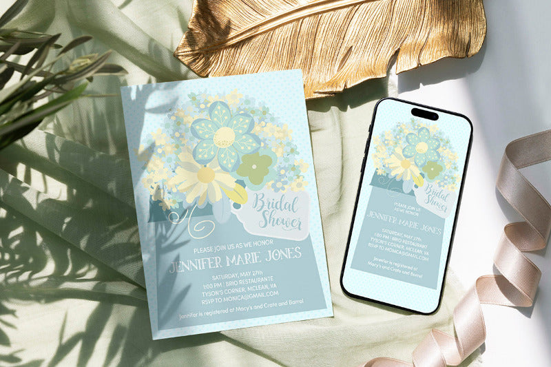 Floral Bridal Shower Digital Invitation Personalized Download