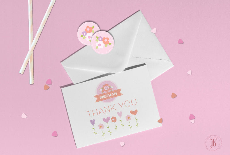 Share heartfelt gratitude with this Pink Flower Garden Personalized Floral Thank You Card Set. Each custom thank you card features a lush pink flower garden design and your personalized name or message, printed on premium cardstock with plenty of space to write. Perfect for weddings, bridal showers, baby showers, birthdays, small business orders, and everyday notes, these personalized floral thank you cards add a soft, feminine, botanical touch to your stationery collection and make a lovely gift for flower and paper lovers.