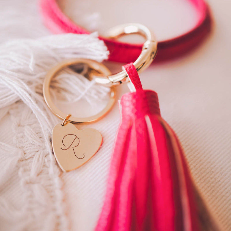 Single Letter Swash Tassel Keychain, Personalized Engraved Keychain - Brass 20MM / Hot Pink is backordered and will ship as soon as it is back in stock.
